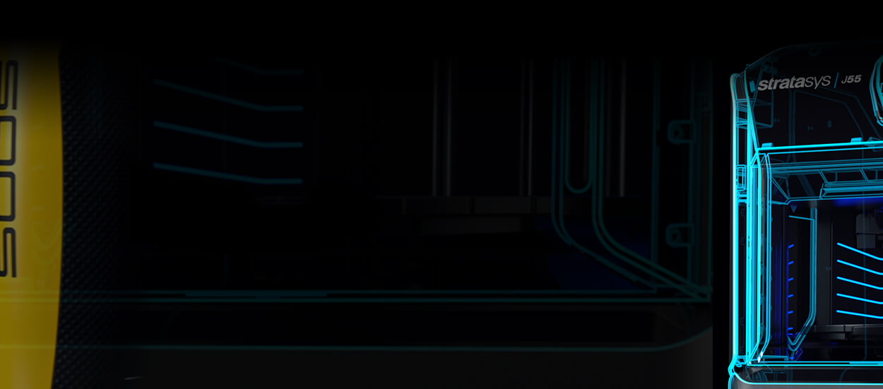 מערכת ההדפסה של J55 מבית STRATASYS מהפכנית מסוגה ומאפשרת הדפסה צבעונית עם חמישה חומרי גלם וחומר תומך. פלטפורמת הבנייה המסתובבת של המדפסת מייצרת נצילות גבוהה של שטח ההדפסה והופכת אותה לקומפקטית ושקטה.